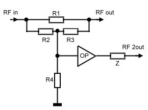A simple active splitter can divide Power very precisely. Look at Fig. 1 where a Doubel-T resistor network is used. An RF. -OP-AMP amplifies the