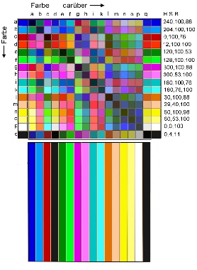 • Sichtbare Farben-tafel deren Farben In Zahlenwerten festgehalten sind:
