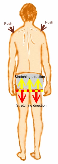 third path of force is from the head through the backbone, the ribs and the hips evenly distributed through both feet on the ground. By stretching, you can reduce the burden of these four against.